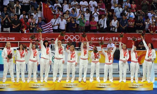 8 月 23 日 , 在 北 京 五 棵 松 奥 林 匹 克 篮 球 馆 进 行 的 北 京 奥 运 会 女 篮 决 赛 中 , 美 国 队 以 92 比 65 战 胜 澳 大 利 亚 队 , 获 得 冠 军 , 澳 大 利 亚 队 摘 得 银 牌 , 而 俄 罗 斯 队 以 94 比 81 战 胜 中 国 队 , 获 得 季 军 。