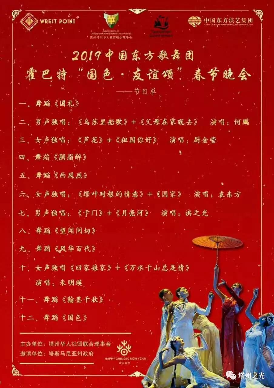 【 精 彩 回 放 】 2019 中 國 東 方 歌 舞 團 霍 巴 特 「 國 色 • 友 誼 頌 」 春 節 晚 會 ( 一 )