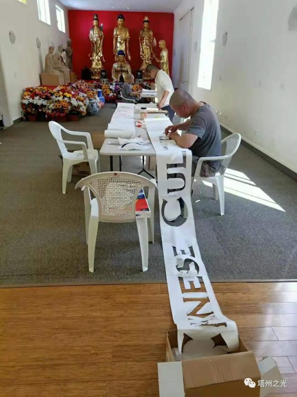 終於基本清理完工,其中有本地佛教徒,有加拿大來的佛教徒,也有南韓來的佛教徒和小轉世者。但還要寫上中,英文字。