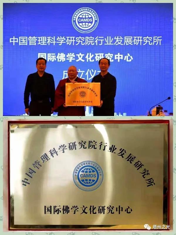 研討會期間,還舉行了中國管理科學研究院行業發展研究所〝國際佛學文化研究中心〞授牌儀式,中國管理科學研究院田志強副院長為中心依託單位澳洲塔州中國佛教學院授牌。