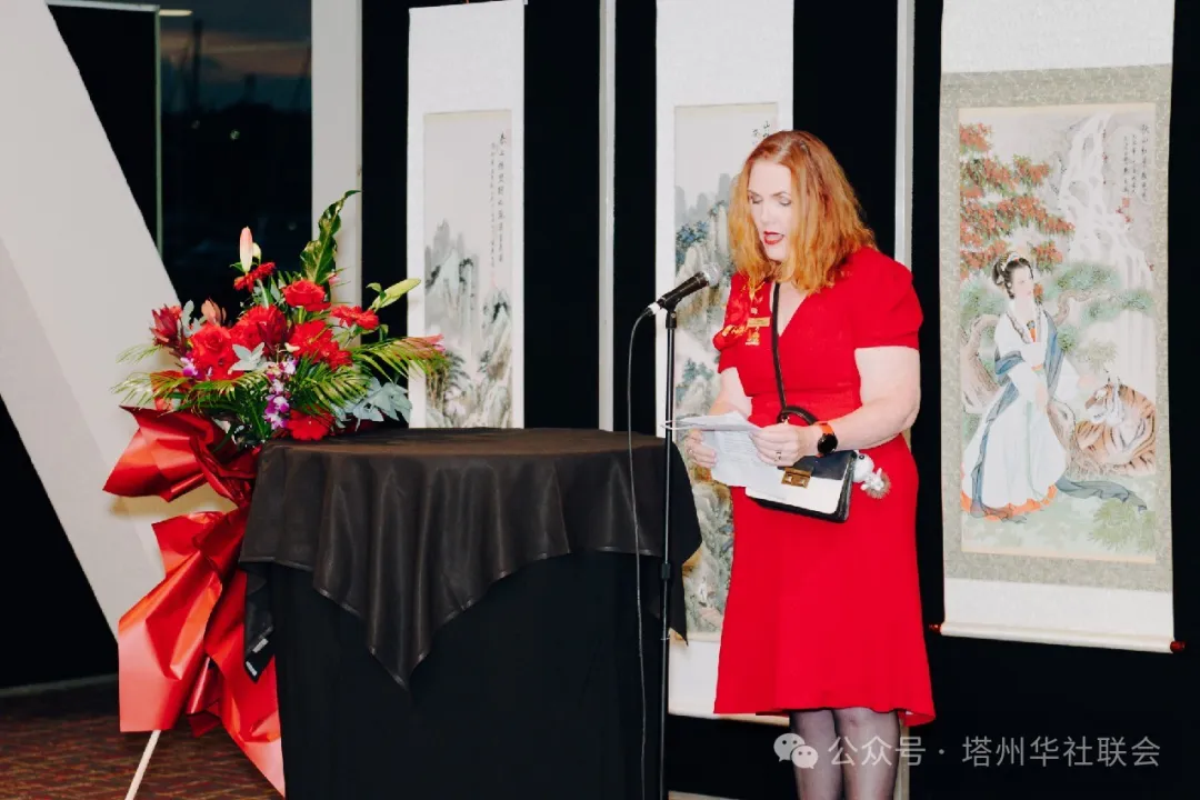 霍巴特市長代表路易斯﹒布魯菲爾德市議員和克萊倫斯市市長代表艾莉森﹒瑞奇副市長在致辭中分別表示,很高興參加塔州華聯會成立五週年慶典晚宴和藝術展;此次活動彰顯了中澳兩國十年來雙邊全面戰略伙伴關係,雙方加強溝通、擴大各領域合作;祝福未來有更多的藝術家能夠交流思想,不斷為塔斯馬尼亞和中國創造出美麗的藝術作品。