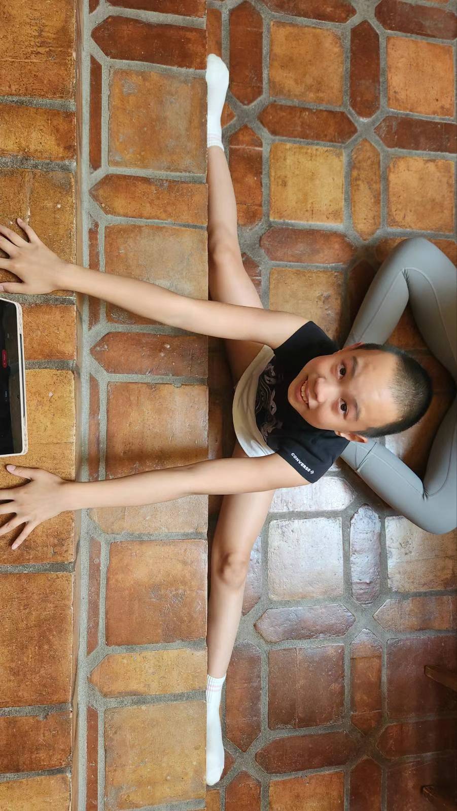 修持時,一開始的動作,四肢向四周伸張、舒展。隨著出汗,身上的寒氣似也從後脖頸、頭部......排出。之後,並緩慢轉圈。