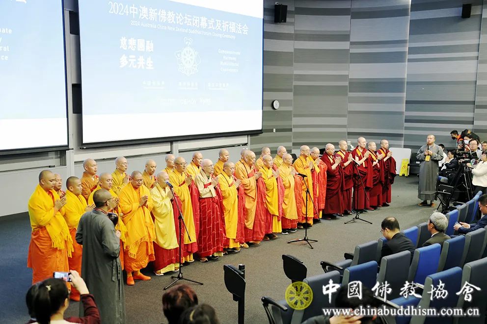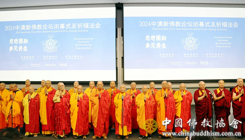 ![]() ▲新南威爾士州多元文化部影子部長馬克﹒庫爾先生在閉幕式上致辭 ![]() ▲中國佛教協會會長演覺法師帶領三大語系佛教界代表祈禱世界和平 ![]() ▲澳大利亞各宗教界代表祈禱世界和平 ![]() ▲中國佛教協會副秘書長普正法師、澳中佛教總會副會長證云法師宣讀《論壇宣言》 《宣言》指出,慈悲,是諸佛之本心。圓融,乃成佛之方便。佛教徒發菩提心,行菩薩道,當以慈悲為先導、圓融為方法。當今世界,文化多元,異彩紛呈,各個國家、不同文明相互聯繫、彼此依存的程度不斷加深,國際社會日益成為你中有我、我中有你的命運共同體。 《宣言》中強調,中澳新三國佛教界應同心同德、同願同行,積極踐行佛教慈悲的精神、以禪修淨化人生的理念,大力弘揚佛教〝依正不二〞的生態文明觀,不斷強化中澳新佛教界的交流與合作。 ![]() ▲閉幕式現場 諸行圓成,繼啟未來。我們相信,佛教這一聯繫中澳新三國人民的文化紐帶、信仰紐帶、友誼紐帶,將不斷擴充套件延伸,更加熠熠生輝。 ![]() ▲閉幕式現場 ![]() Copyright © 1991- Jin-Gang-Dhyana Incorporated ![]() |