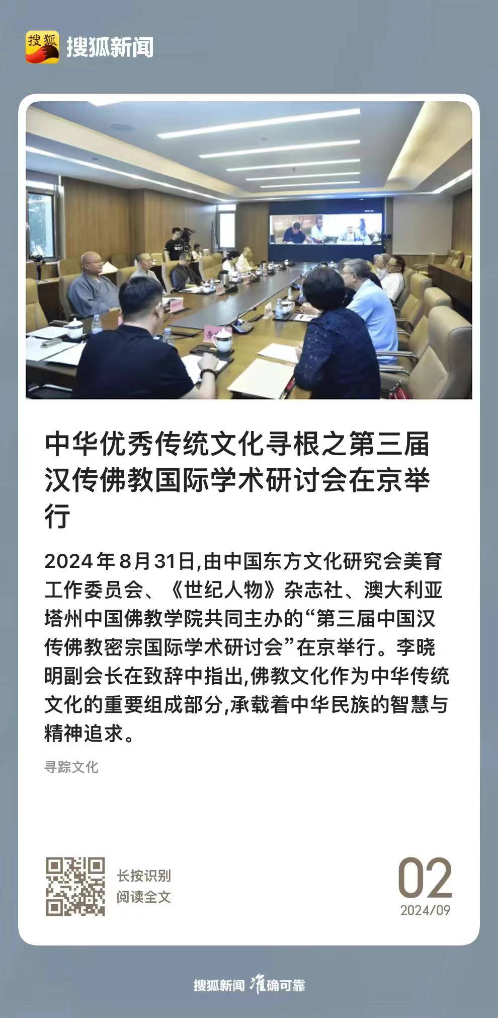 【第三屆國際學術研討會特刊9﹒轉載】中國入口網站搜狐新聞對〝第三屆中國漢傳佛教國際學術研討會在京圓滿召開〞的報道
