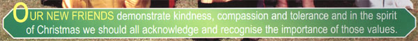 我 们 的 新 朋 友 们 示 范 慈 悲 和 包 容 。 我 们 所 有 人 都 应 以 圣 诞 节 的 精 神 , 承 认 、 认 同 那 些 价 值 观 的 重 要 性 。