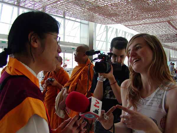 接 受 西 班 牙 巴 塞 隆 拿 电 视 台 女 记 者 采 访