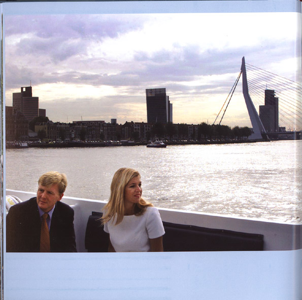 Prince William-Alexander and Princess Máxima, with the Erasmus Bridge in the background William-Alexander 王 子 和 Máxima 王 妃 , 背 景 為 Erasmus 橋