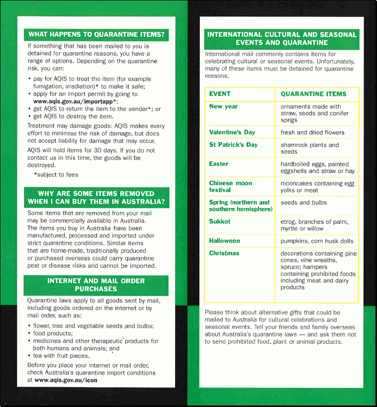 What can't be mailed to Australia