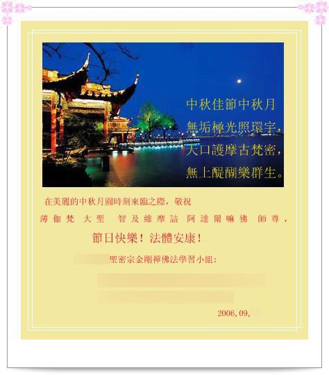 现 将 X X X X 圣 密 弟 子 们 的 中 秋 贺 卡 寄 上 , 聊 表 弟 子 们 的 虔 诚 供 奉 之 心 。