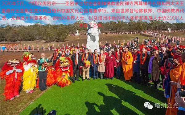 薄 伽 梵 智 及 维 摩 诘 宗 师 筹 建 澳 洲 塔 州 中 国 文 化 公 园 , 涵 盖 以 释 、 道 、 儒 文 化 为 核 心 的 中 国 文 化 博 物 馆 、 金 刚 禅 大 学 、 金 刚 禅 寺 、 艺 术 馆 、 美 术 馆 、 音 乐 厅 、 会 议 中 心 、 敬 老 院 等 各 类 设 施 , 是 一 个 宏 大 的 以 弘 扬 和 传 承 中 华 优 秀 传 统 文 化 为 己 任 的 多 视 角 、 多 层 面 的 综 合 性 文 化 平 台 , 作 为 一 份 灵 性 礼 物 , 无 偿 供 奉 给 澳 洲 政 府 和 人 民 、 供 奉 给 全 人 类 。 自 2014 年 习 近 平 主 席 视 察 塔 州 之 后 , 整 个 澳 洲 普 遍 掀 起 学 习 中 国 文 化 的 高 潮 。 塔 州 中 国 文 化 公 园 这 一 地 标 式 灵 性 建 筑 屹 立 在 南 极 边 陲 霓 虹 山 麓 , 不 仅 将 进 一 步 促 进 中 澳 两 国 文 化 交 流 , 对 澳 洲 人 民 理 解 认 识 中 国 文 化 带 来 方 便 和 帮 助 , 亦 将 圆 满 彰 显 中 华 民 族 优 秀 传 统 文 化 这 一 最 深 厚 的 文 化 软 实 力 , 在 推 动 世 界 和 平 、 人 类 和 谐 、 文 明 互 鉴 的 进 程 中 做 出 不 朽 贡 献 。