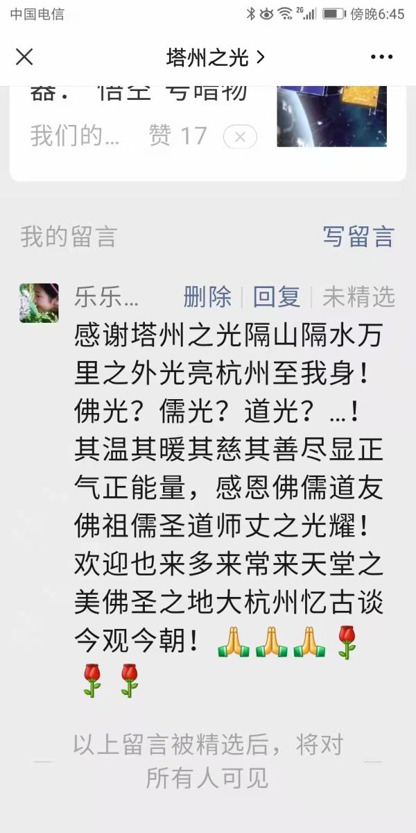 感謝塔州之光隔山隔水萬里之外光亮杭州至我身!佛光?儒光?道光?......!其溫其暖其慈其善盡顯正氣正能量,感恩佛儒道友佛祖儒聖道師丈之光耀!歡迎也來多來常來天堂之美佛聖之地大杭州憶古談今觀今朝!