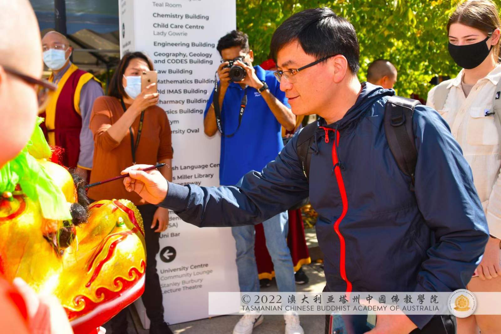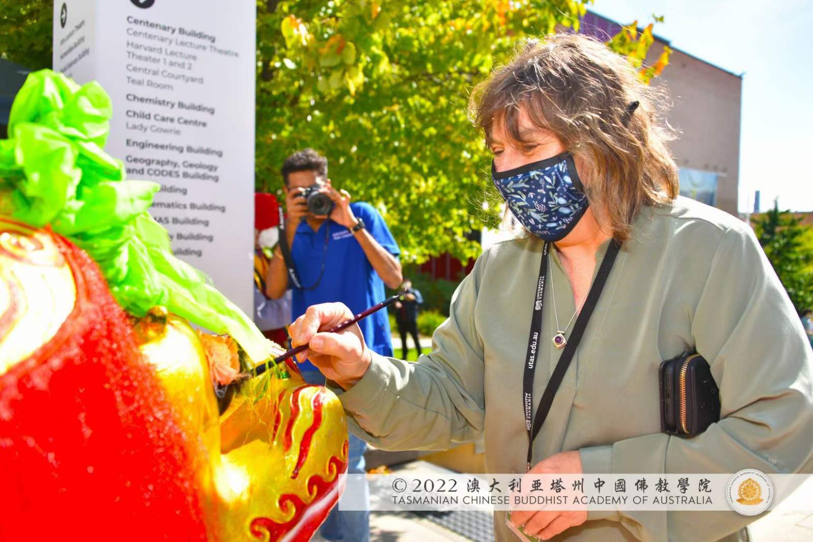 由塔州大學小區及充實小組主席 鼓鈸聲悠揚宇宙蒼穹,激動人心; 聖法獅子一吼, 大聖 釋迦牟尼 佛祖法性身宇宙靈性之光,遍照天上地下十方三世無垠無盡盡諸法界。在人群此起彼落的歡呼聲中,聖密法獅完成了高低起伏、跳躍探採、旋轉開合的一系列動作,以聖密獅形陀羅尼,於隱態時空中無相結界,普轉聖密法輪,祈願為塔州、澳大利亞的和平和諧,為全世界各個國家、各個民族的和平和諧,祈大福報,降大吉祥,施大威德,賜大光明。眾生得法歡喜,讚歎不絕,掌聲經久不息。 澳大利亞塔州中國佛教學院感謝塔州大學小區及充實小組給予我們機會,與塔州大學的師生們分享中國傳統靈性文化,共同體嘗佛法醍醐。