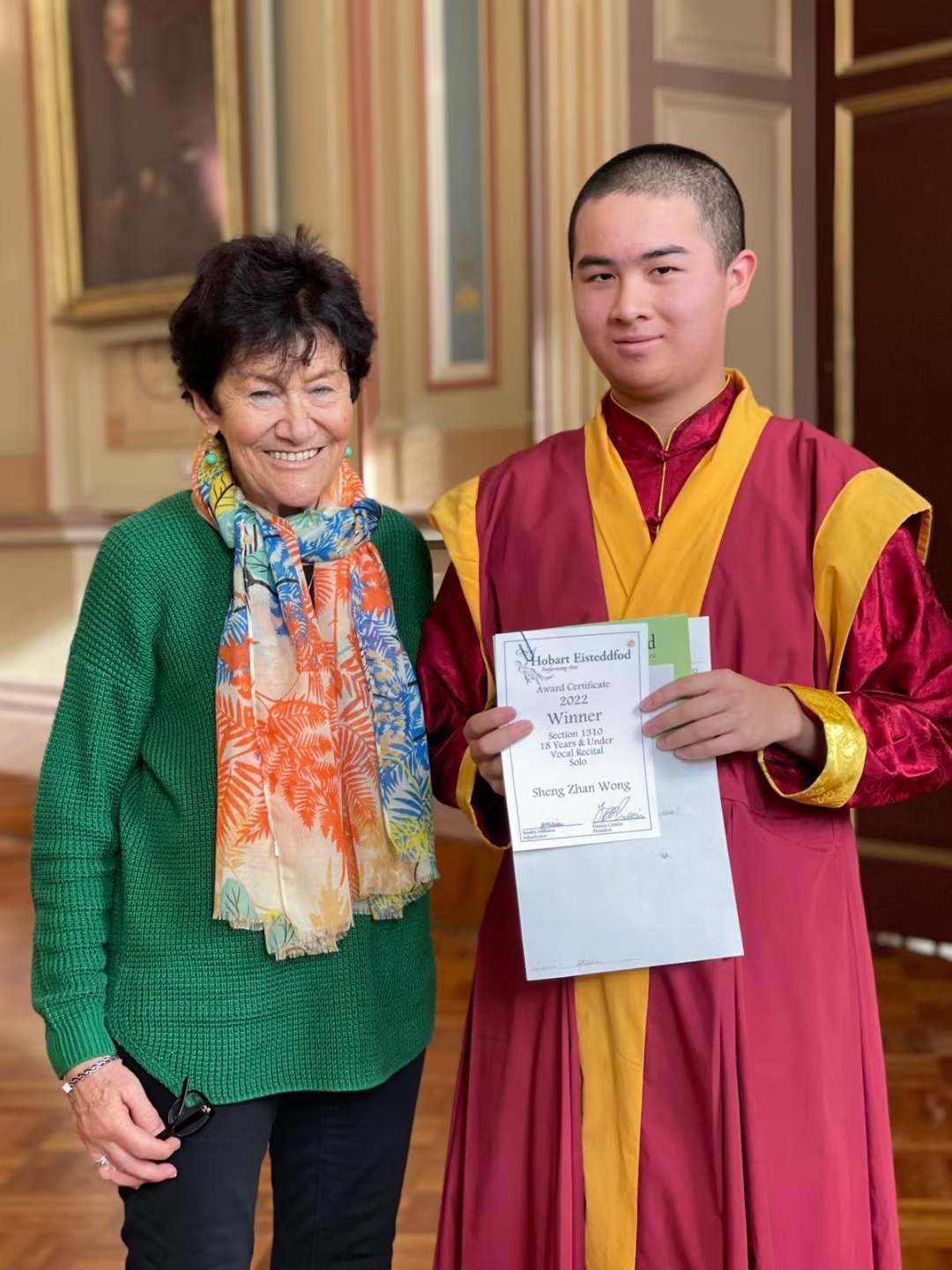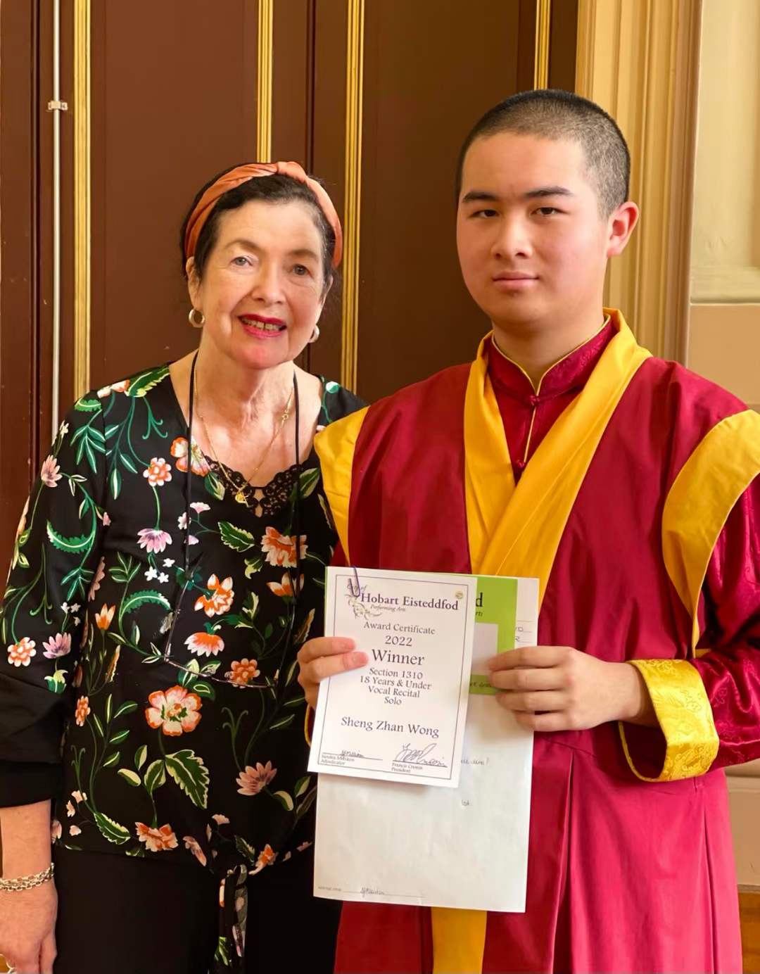 金剛永誠五世在市唱歌比賽中連獲三項冠軍 ![]() 弟子感恩 師尊慈悲加持:五世在剛才的唱歌比賽專案中拿到了第一名。贊助這個專案的獎金的那位女士,在五世拿到了獎項後,特意到來跟五世說,這個獎項是她家人贊助的,是她一家人為紀念她逝去的父母而設的獎項。(詳情待發) 五世這次比賽唱了一首中文歌《天邊》,觀眾席中大家都說五世唱得很好聽,唱中文很自然。 弟子在五世這回比賽後,讓五世和這位女士,還有五世的鋼琴老師拍了照。弟子敬呈 師尊照片如下。 Copyright © 1991- Jin-Gang-Dhyana Incorporated ![]() |