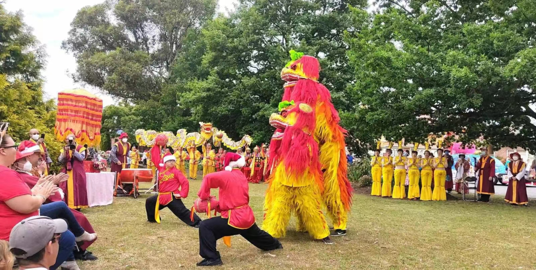 尊敬的新諾福克的( 我們今天舞獅舞龍,帶來了中國的文化,帶來了中澳建交五十週年以來的友誼,我們想,我們的友誼是不能夠被破壞的。 我們今天還帶來了中國的古代文化—秦王破陣,我們還帶來了近代的中國文化也是古代的—還珠格格,我們還帶來了從遠古到現代的所有的中國人民信仰的佛教的文化—千手觀音,這證明文化的交流能夠促進世界和平,促進相互友好、和諧。