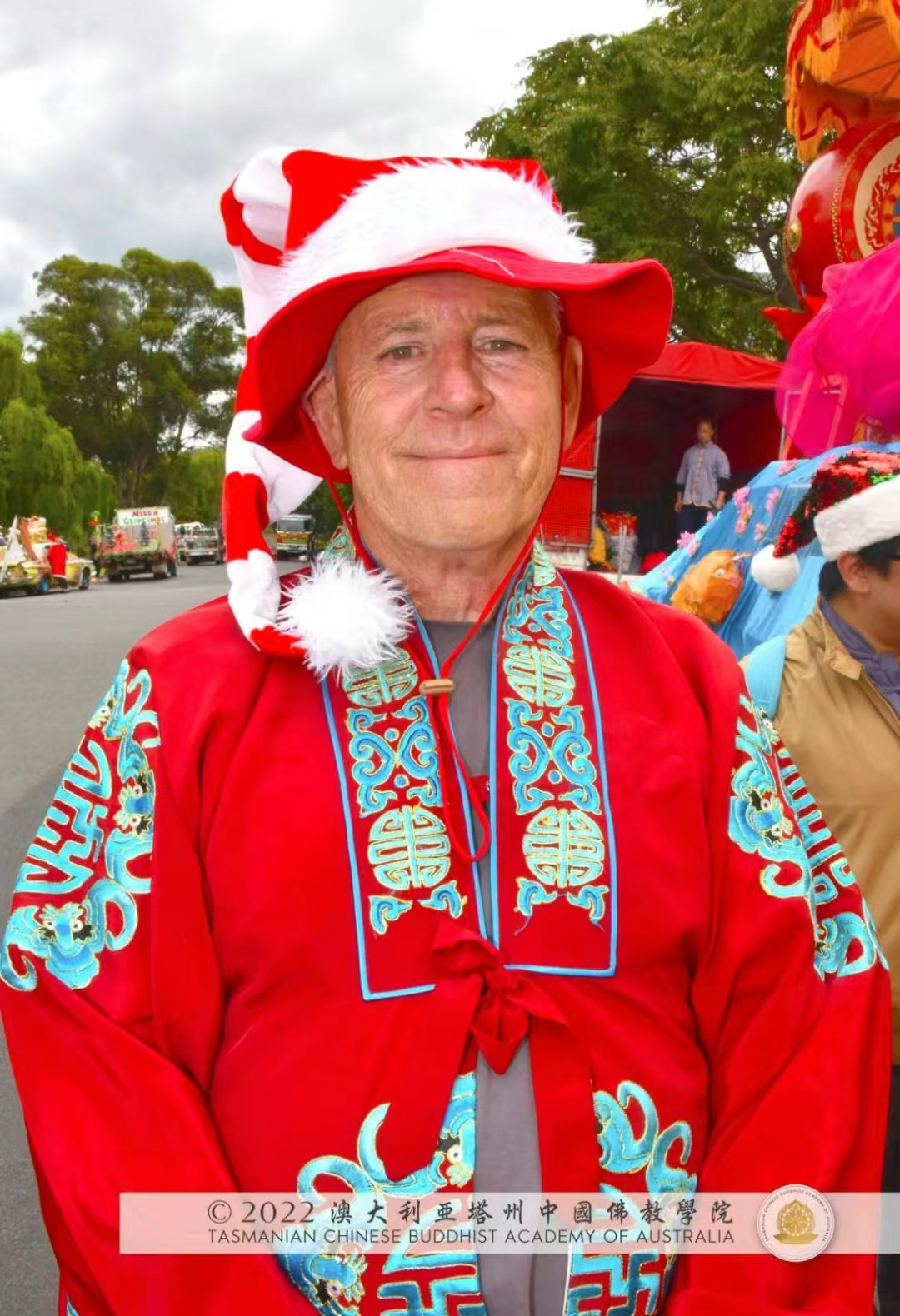 隨著向來賓賜送聖誕禮物後,金剛紅淨長老宣佈聖密點睛儀規圓滿結束。看著一張張笑臉,齊聚在 薄伽梵 師尊的身邊道別,恍如古天竺毗耶離城一幕幕的渡眾大戲又在此時輪開演 遊行開始後,聖密宗的隊伍是最受民眾喜愛的,人們看見舞龍舞獅就禁不住歡喜雀躍,紛紛拍照留念,舞龍舞獅隊還親切地與現場觀眾互動,引起觀眾一片譁然,大家都開心地與之互動瑜伽,弟子相信,這一些場景將刻骨銘心般地篆刻在他們的心靈深處,他們與中國漢傳密宗—聖密宗古梵密金剛禪佛教已經結下了不思議的華嚴聖緣。 遊行結束了,大家再次聚在 師尊的法座下,懇請 師尊多多保重! 師尊以三密加持弟子們,弟子們懇請 師尊早點休息,大家依依惜別。這是一幕令人潸然淚下的場景, 師尊爲了救渡無量眾生,將自己的一切都供養給了聖教、供養給了眾生, 師尊的聖密行持,就是弟子們傚法的榜樣。感恩當代的 維摩聖者,您將無量聖光遍曌寰宇!
