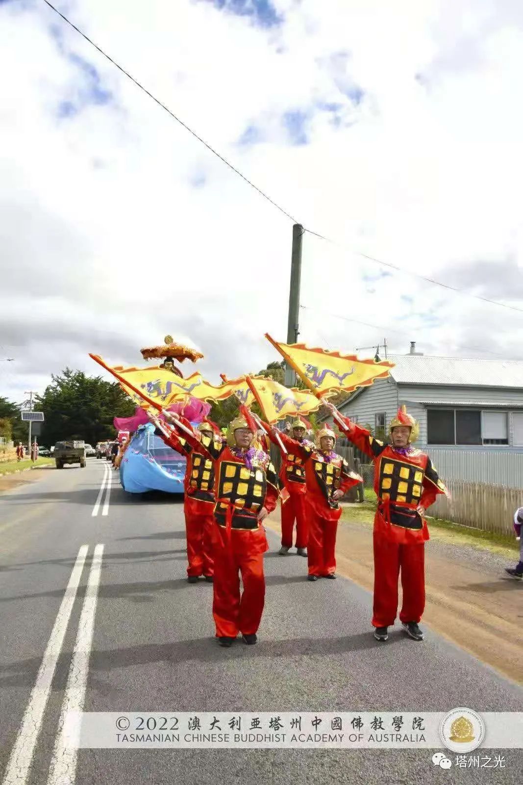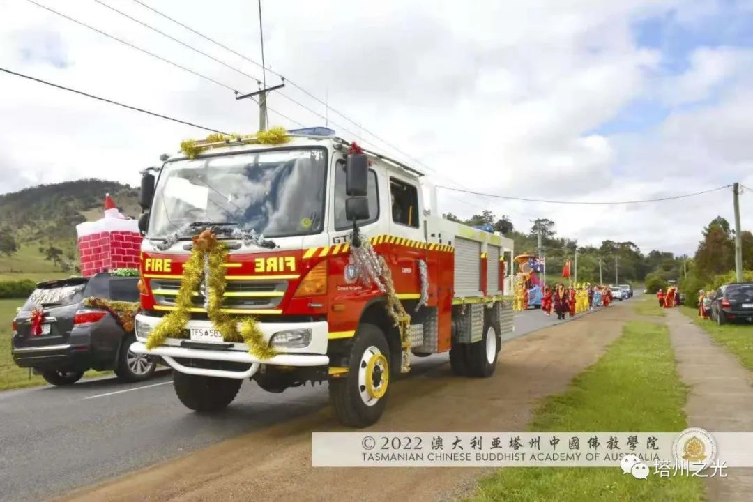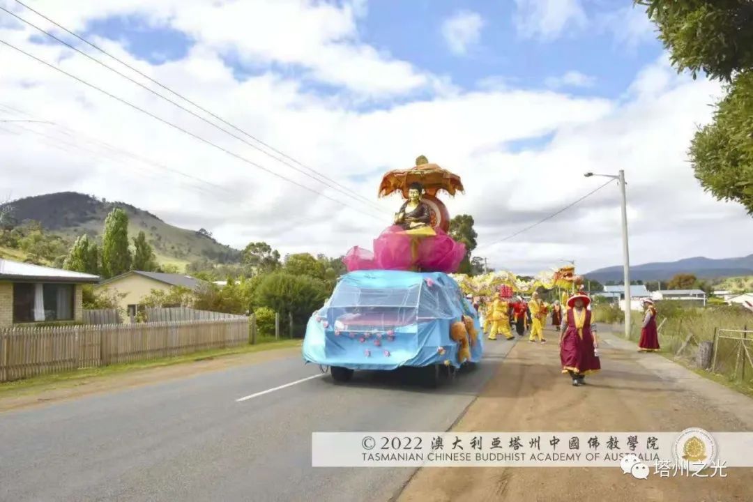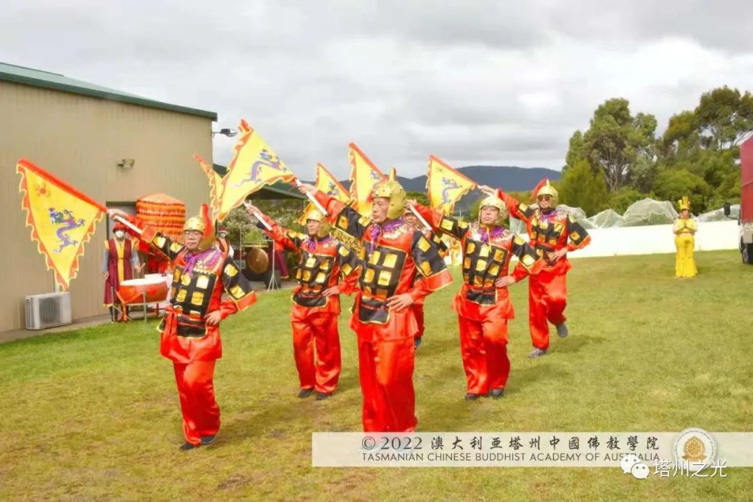 中國精神 自信自強 生機盎然 澳大利亞塔州中國佛教學院,在每年聖誕巡禮的聖密曼荼羅方陣,皆以聖密長老執持中國、澳洲國旗並肩同行,喻意佛學院以平穩踏實的腳步,緊隨母親的呼喚,顯微闡幽,義不容辭,積極推動中國精神靈性文化,邁出祖國文化自信,民族自豪,不卑不亢的步伐,實踐「內心謙下(是功),外行於禮(是德)」的普敬價值。 事實證明,不同文化的交流,能夠促進和諧,促進世界和平,促進世代友好發展。 在舉國歡慶的耶誕月,一週之內, 薄伽梵 智及維摩詰 師尊三度受塔州各市政府之邀參加年度慶祝活動,此三座衛星城鎮分別位於: