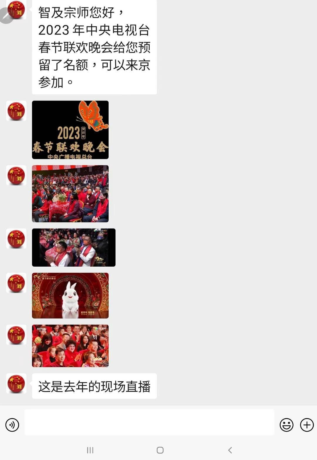年中央電視臺春節聯歡晚會給您預留了名額,可以來京參加。