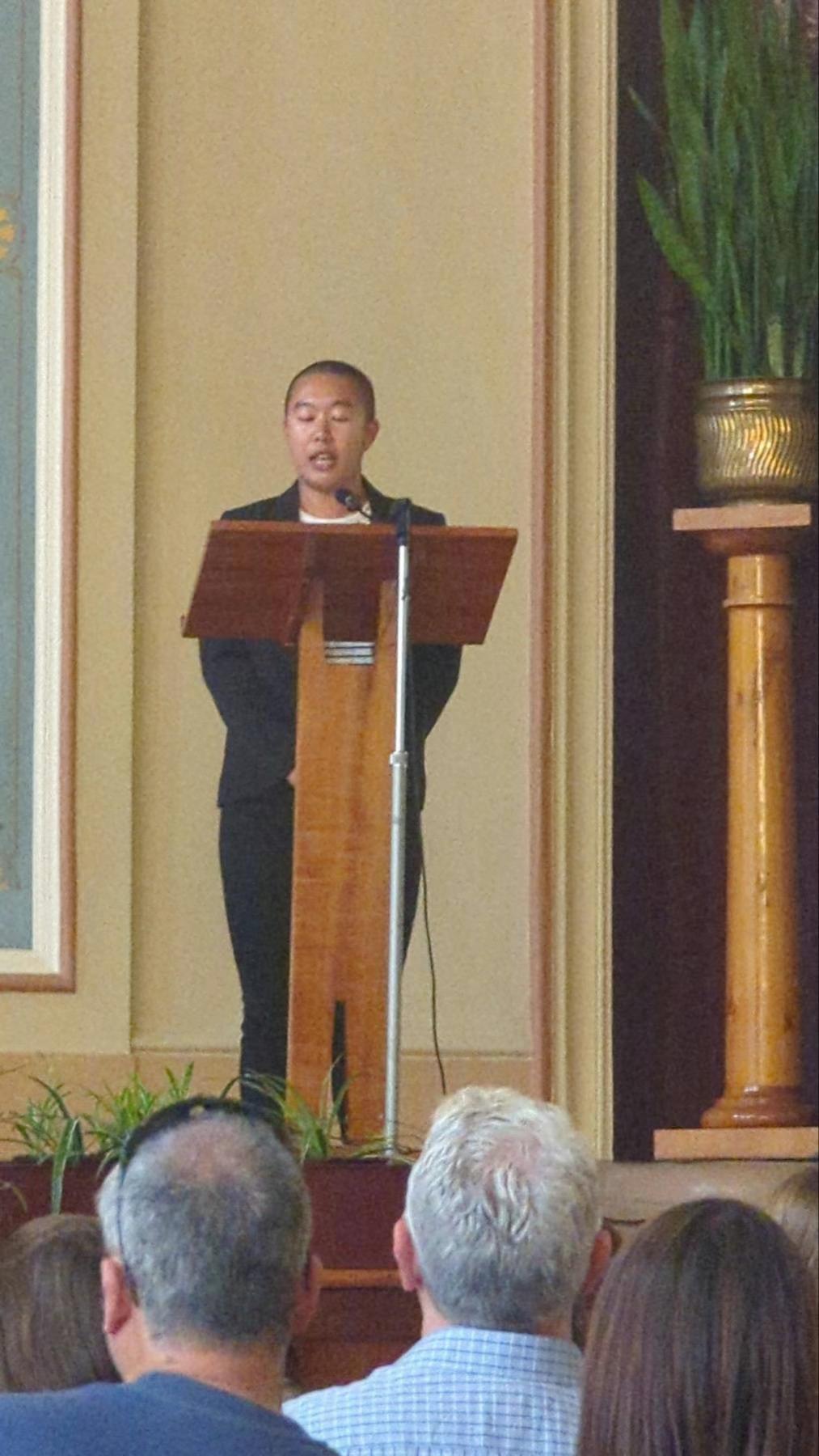 I don't think Sheng-Yuan really needs much introduction, so today he will be playing music from Franz Liszt, he will be raising funds for Cancer Council Tasmania. And I'd like to take this opportunity to acknowledge the representatives from Cancer Council Tasmania today with us today, Penny Egan who is the Chief Executive Officer; Jill Bannon who is the Director, Engagement & Fundraising for Cancer Council Tasmania; Shan Deng who is Sheng-Yuan's teacher, she's also Senior Lecturer of classical music at the University of Tasmania; as well as Bhagavan Zhi-Ji Vimalakirti Patriarch Master who everyone knows is Sheng-Yuan's spiritual guiding teacher, He is also the President of the Tasmanian Chinese Buddhist Academy of Australia.