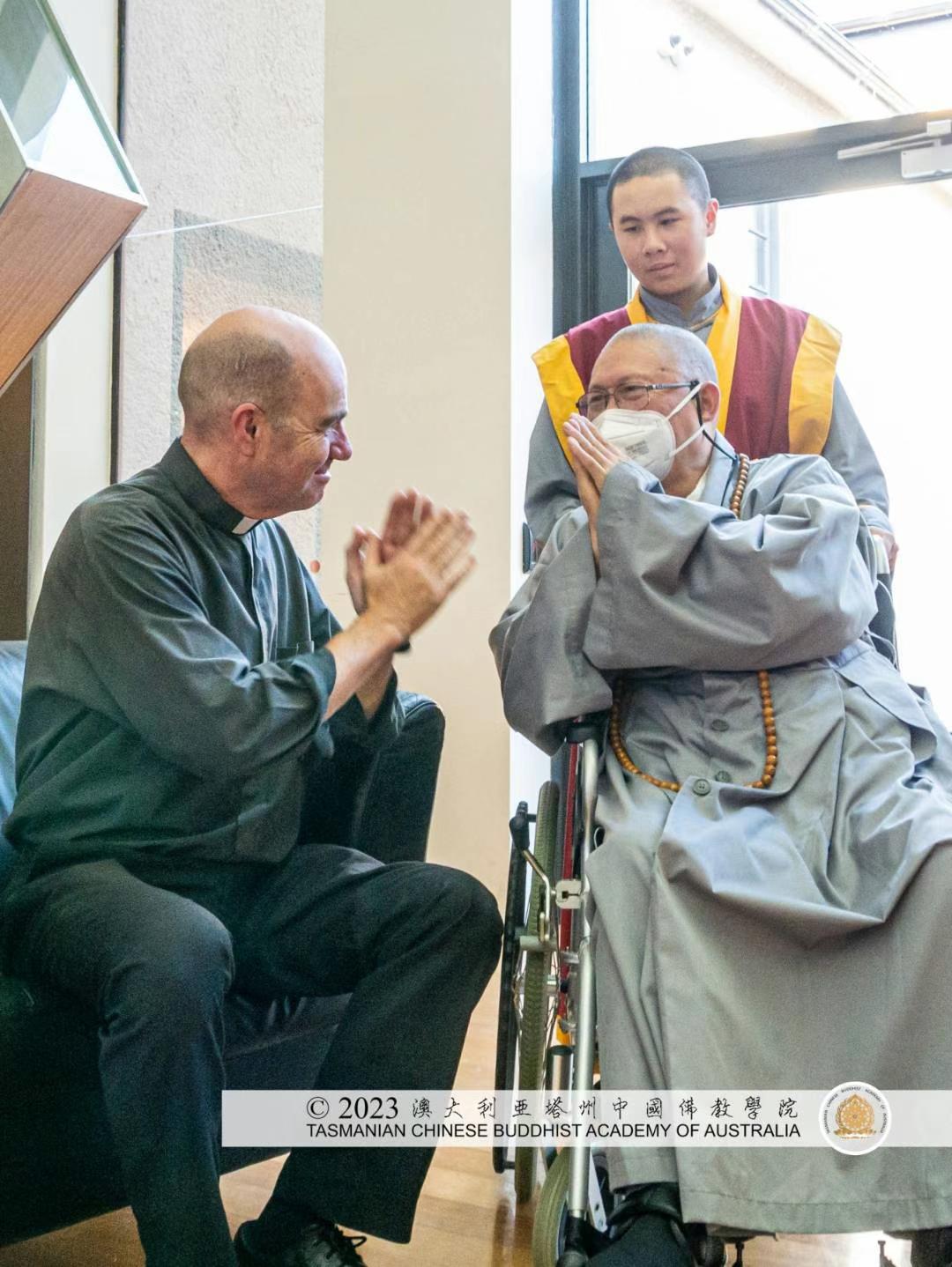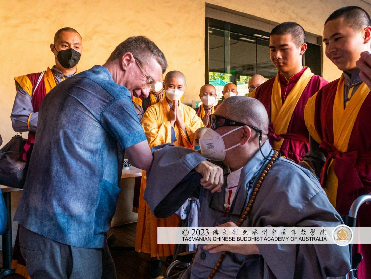在2023年2月24日週五傍晚五時,百餘名本省宗教信仰者, 薄伽梵 智及維摩詰 師尊的新、老朋友,如霍巴特聖戴維大教堂的主持牧師最受尊敬的理查德德﹒漢弗萊Very Reverend Richard Humphrey、塔州多元文化局資深副會長伊斯蘭教的艾曼﹒賈夫里Aimen Jafri 女士、著名男校赫臣士學校的大牧師李﹒維塞爾博士Reverend Dr Lee Weissel 、塔州為和平的宗教召集人婆羅門教的泰莉﹒蘇斯米爾奇Terry Sussmilch ,中國漢傳佛教......等,薈萃一堂。