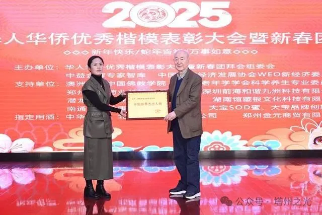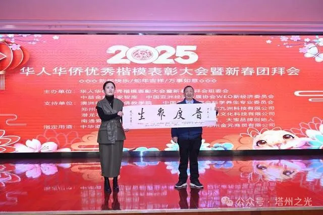 为此,华人华侨优秀楷模表彰大会暨新春团拜会组委会、中益金辉专家智库、中国亚洲经济发展协会 国家民政部原副部长、中国藏学研究中心党组书记陈虹同志为澳洲塔州中国佛教学院院长 薄伽梵 智及维摩诘 宗师颁发荣誉证书。