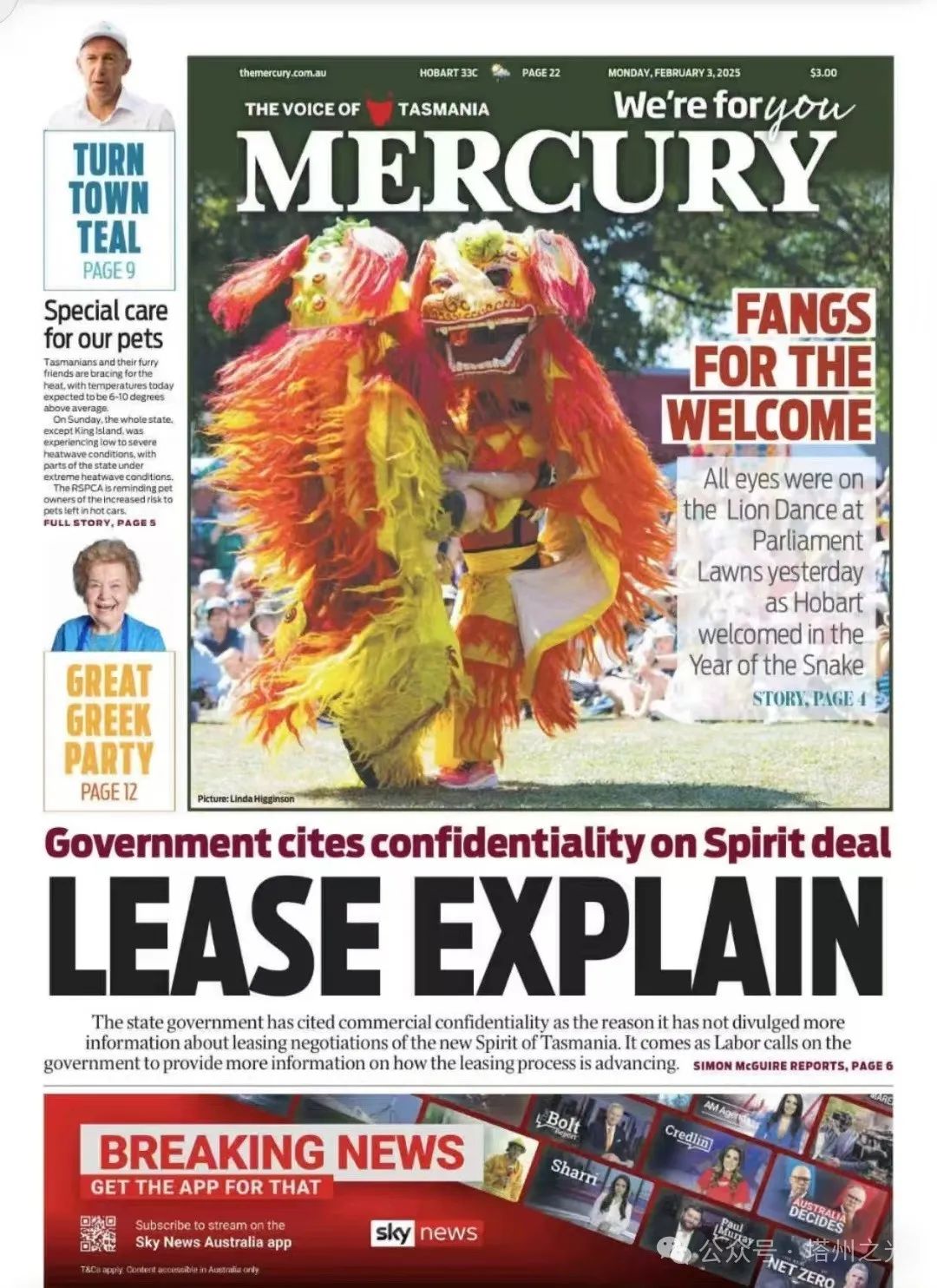 【贺新春﹒分享】澳大利亚塔州主要媒体《水星报》报导中国蛇年