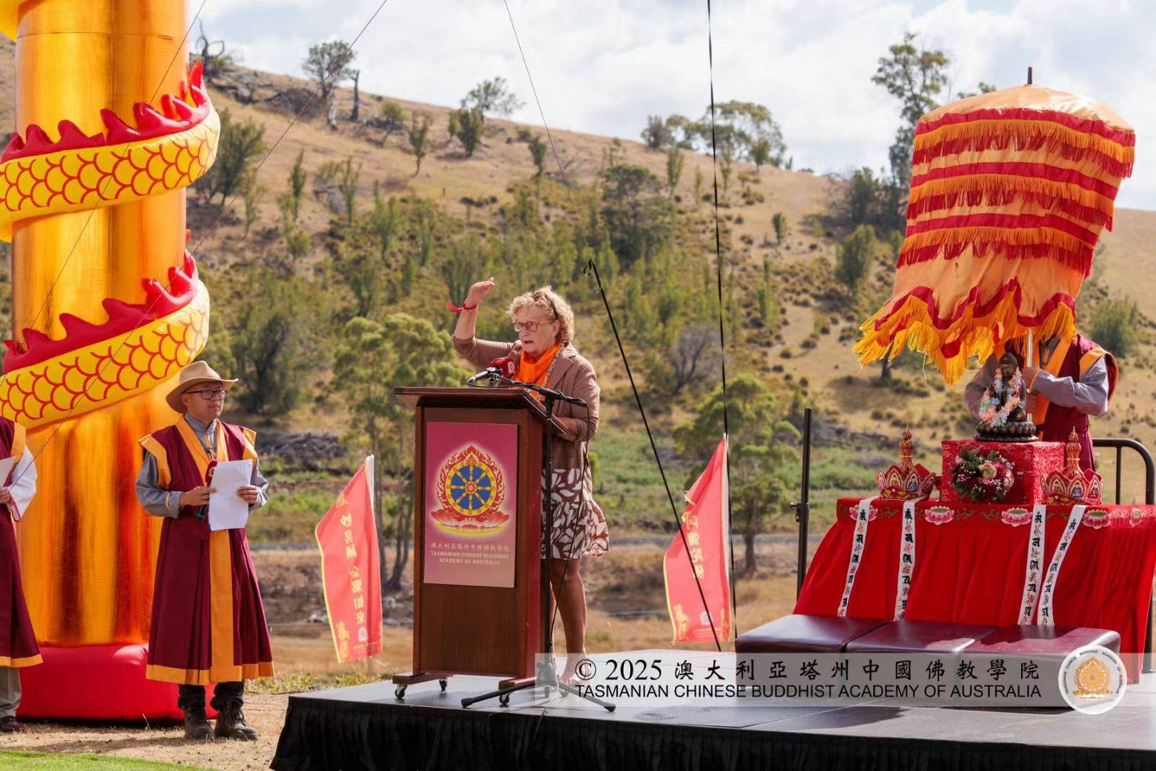澳大利亚塔州中国佛教学院 〝2025乙巳鸣钟迎新春法会〞 土著长者Aunty Jan Langridge 欢迎来到国家仪式
