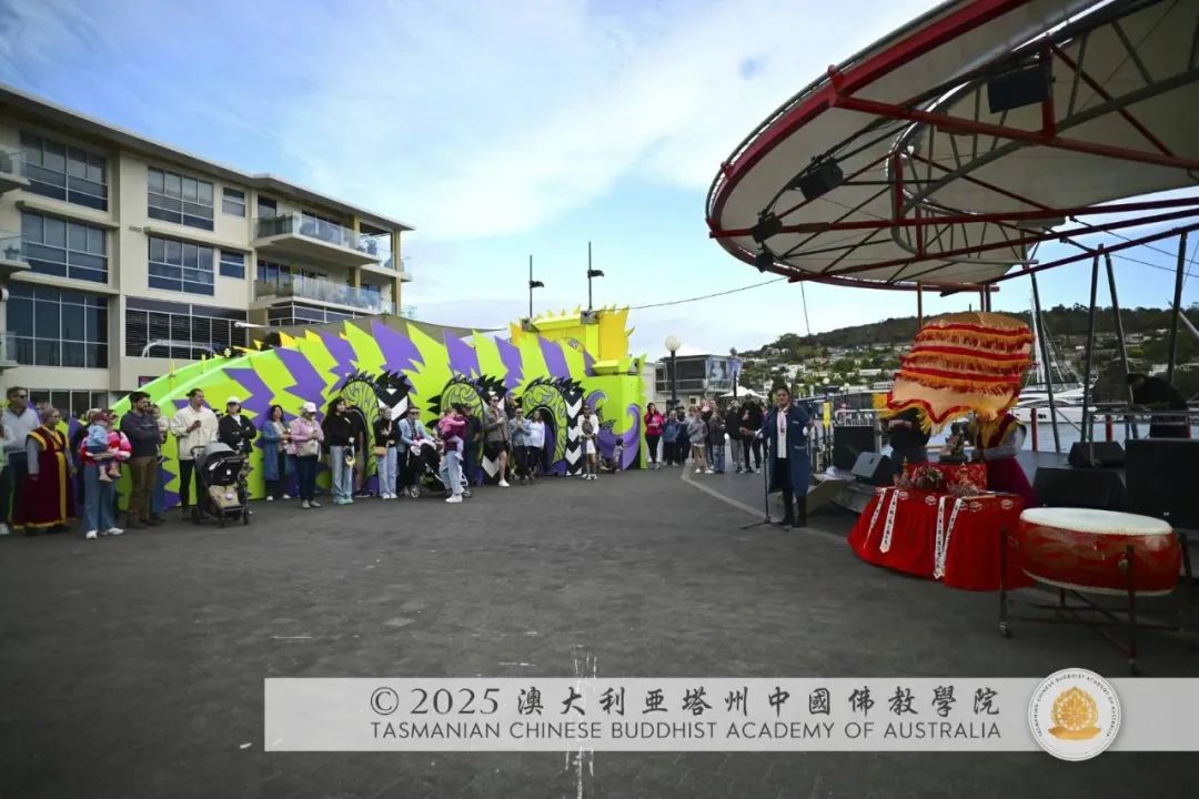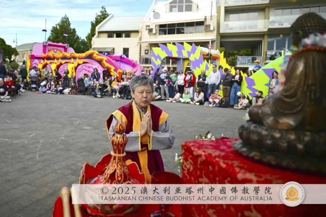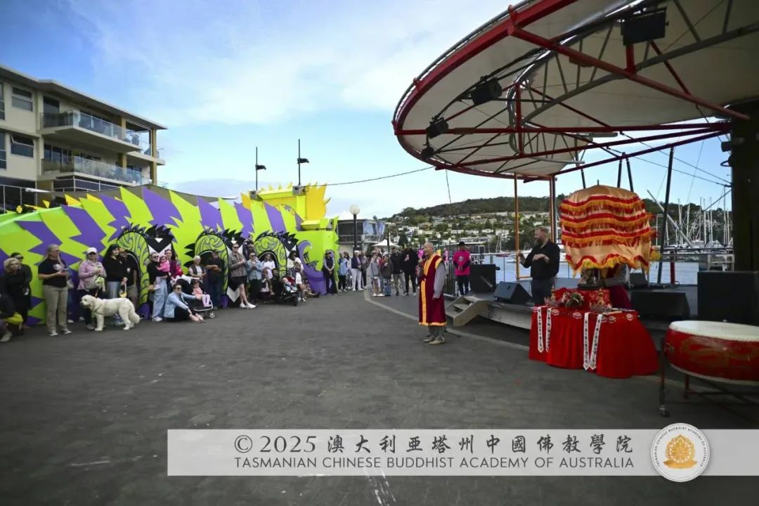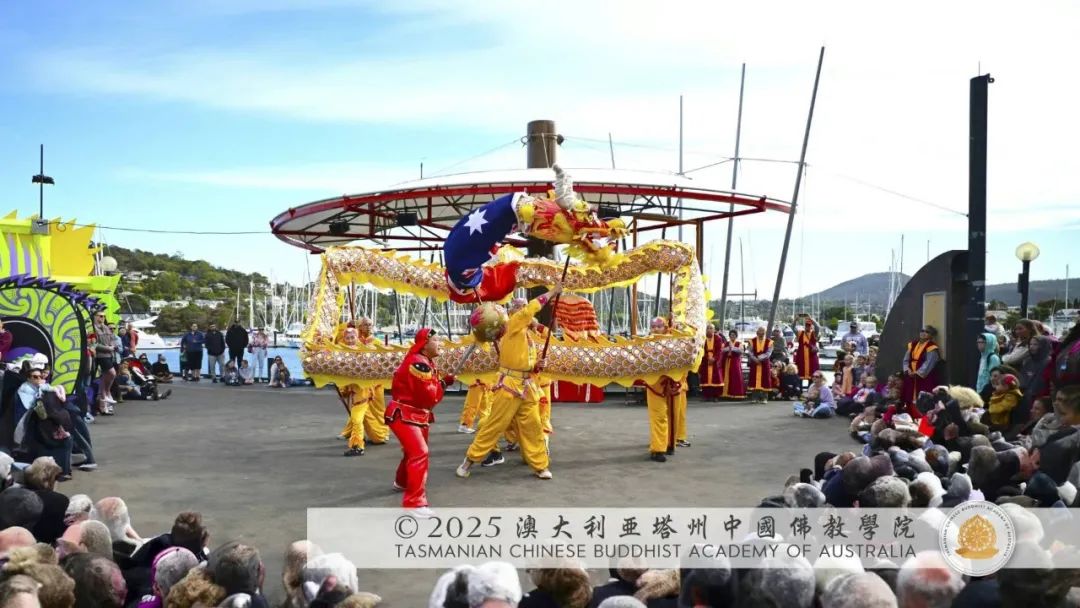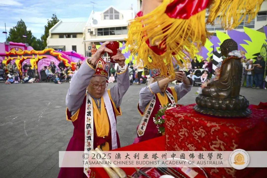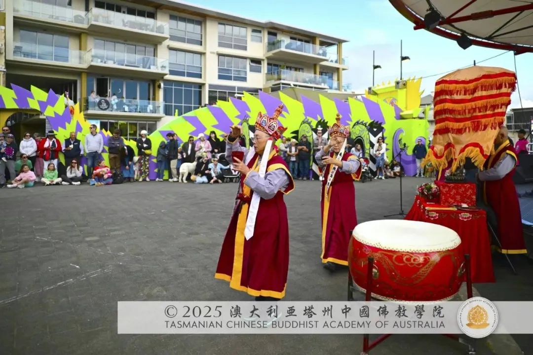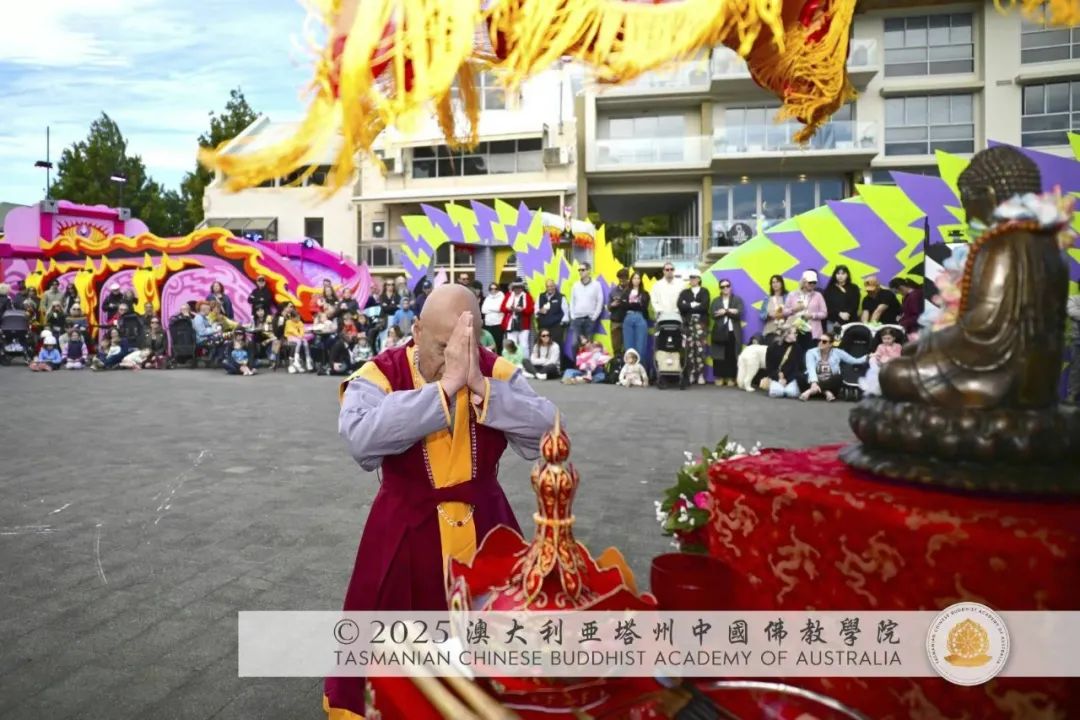 [百相万行 ![]() ![]() 〝飞龙在天,利见大人〞。圣龙擎首凌云,振翼遨游,傲视九霄,气宇轩昂,神形自在。其势扶摇直上,如贯穿天地之金刚炁柱,所过之处,云开气裂,光耀万方。啸声一起,惊动四隅,观者无不侧目振神。圣龙俯冲回旋之际,身姿蜿蜒翻腾,龙影如墨笔流转,于虚空之中勾勒〝中〞字纹样,宛如真言流形,显出 薄伽梵龙天圣族之神圣印记。其形其气,皆合天地阴阳之理,所动所静,无非法界之显现。每一飞跃,皆承载灵气;每一缕龙影,皆昭示吉祥。其光如水,遍洒人间,其气如雾,润泽群灵。鼓点激昂,钹声铿然,圣龙盘旋越发矫健,震撼全场。观者屏息凝神,心随鼓动,神随龙行,或潸然动容,或喜形于色,掌声如雷,赞声不绝。 鼓声乍起,圣法狮子一声长吼,犹金刚震怒,惊天动地,声彻十方。 中国汉传佛教密宗之圣法狮子舞,所显非寻常技艺,实为表法密仪。其舞于无形中结界,隐态时空,气机流转而不留痕。舞步激昂而刚劲,高低腾挪,如金刚鼓震,似雷霆万钧;旋转开合,如法轮常转,圆满无碍,内含密义。其形为狮,实为法。圣密狮形陀罗尼,显忿怒之相,然非嗔怒,实乃大悲之威。舞者一跃一翻,非徒形势之变,实表〝正法轮身、法性轮身、教令轮身〞三身一如之妙义。降魔伏妖,显无畏之姿,圣光赫赫;破邪显真,现威德之相,正法昭昭。观之者心惊胆定,灵识俱清,如见 大圣 释迦牟尼 佛狮座前绝狐迹而万邪息。众生若见,即得安乐;若闻,即得解脱。是舞也,非唯为观,实为加持。愿此舞所起,化作一愿,祝塔州风调雨顺、世界各地国泰民安。