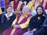 聖 智 及 維 摩 詰 阿 達 爾 嘛 佛 師 尊 與 州 多 元 文 化 部 長 Mrs Lyn Andersch 及 海 外 學 生 會 主 席 柯 晶 晶 , 同 座 入 席