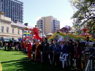 聖 智 及 維 摩 詰 阿 達 爾 嘛 佛 師 尊 指 導 下 的 澳 洲 泰 磉 牟 尼 亞 州 的 聖 密 宗 金 剛 禪 佛 教 世 界 總 部 派 出 了 舞 龍 隊 伍 參 與 2 0 0 2 年 度 的 塔 州 多 元 文 化 週 。
