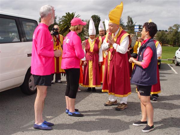 龍 舟 會 主 事 人 們 親 自 出 迎 代 表 團 。