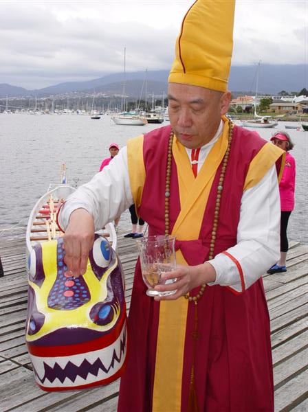 金 剛 永 樂 長 老 在 諸 天 諸 佛 的 擁 簇 之 下 , 進 行 聖 密 灑 淨 儀 規 。