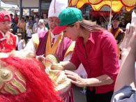 , 在 聖 密 龍 獅 巡 遊 法 會 作 聖 密 獅 子 吼 。