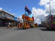 聖 誕 遊 行 隊 伍 最 顯 著 的 位 置 , 整 裝 待 發 。