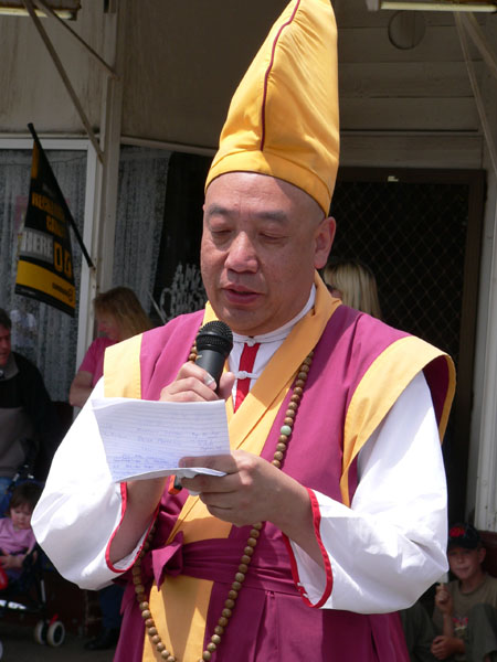 , 在 聖 密 龍 獅 巡 遊 法 會 作 聖 密 獅 子 吼 。