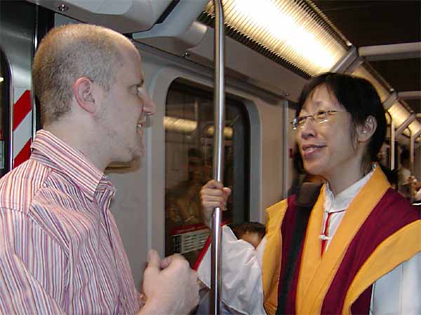 看 似 偶 相 遇 , 前 世 种 圣 因 ── 在 巴 塞 隆 拿 的 地 下 铁 路 内 , 金 刚 禅 彰 长 老 向 一 位 美 籍 犹 太 影 片 制 作 人 作 圣 密 法 布 施 。
