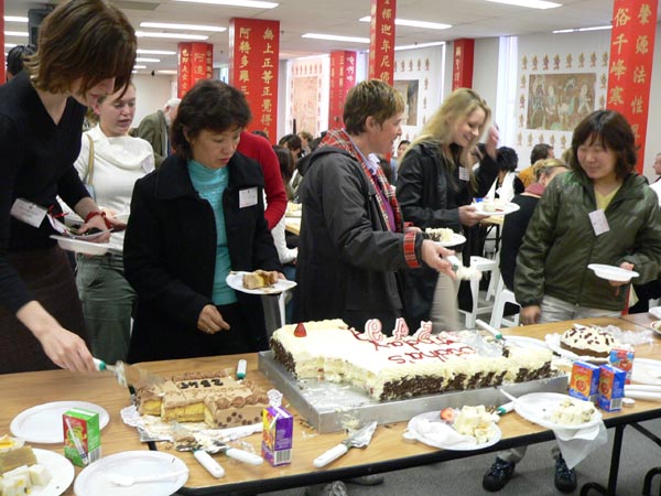 庆 祝 大 圣 释 迦 牟 尼 佛 祖 的 生 日 , 即 是 庆 祝 每 一 位 众 生 的 生 日 ── 众 人 一 同 分 享 美 味 的 蛋 糕 。