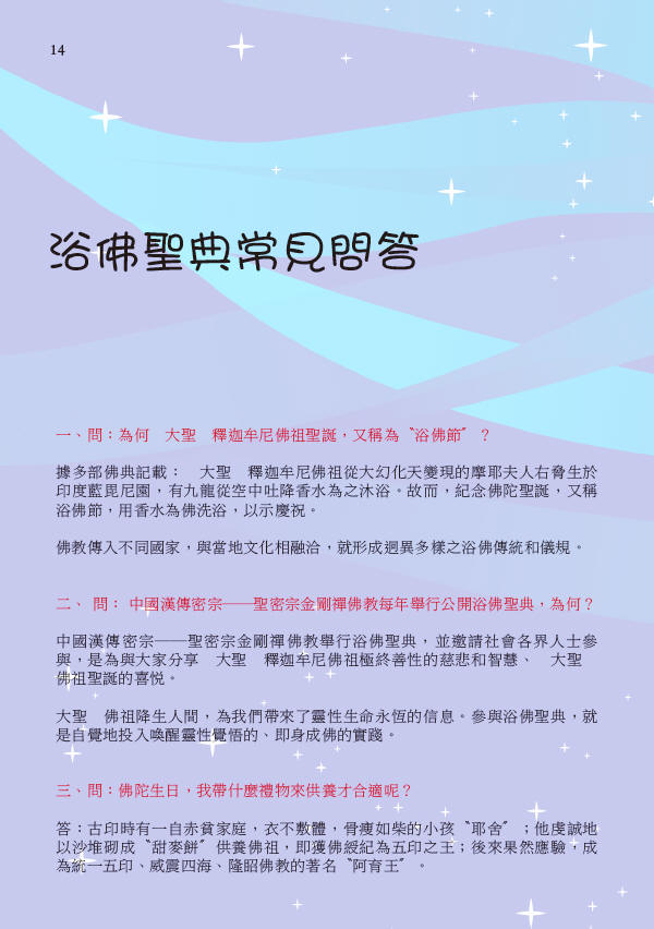 《 浴 佛 法 會 場 刊 》目 錄 頁