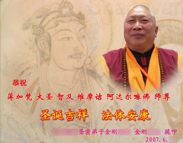 薄 伽 梵 大 聖 智 及 維 摩 詰 阿 達 爾 嘛 佛 師 尊 多 保 重 身 體 。 弟 子 只 有 自 己 努 力 清 淨 、 精 進 、 提 高 , 才 能 真 正 為 師 尊 分 擔 辛 勞 !