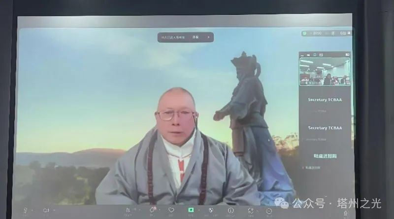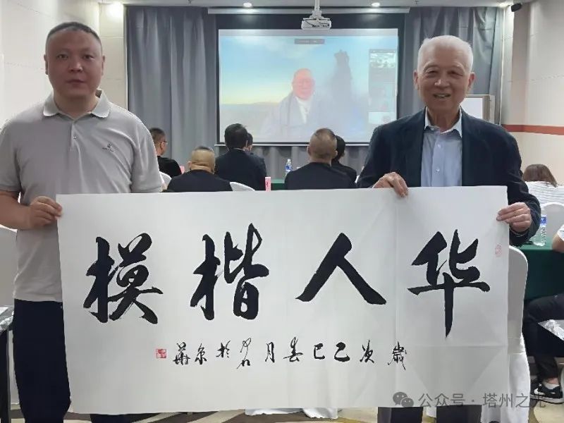 澳大利亚塔州中国佛教学院院长 薄伽梵 智及维摩诘 宗师通过视频连线的方式参加本次会议并分享了他在传统文化领域的见解与智慧。尊师的演讲得到了出席活动的领导和嘉宾们一致认可,尊师在弘扬中华传统文化方面所作出的贡献鼓舞了会上的所有人,商务部原副部长周可仁现场为 薄伽梵 智及维摩诘 宗师题字书写墨宝(华人楷模)。由翰林博雅国际俱乐部理事长郭世勃代收。