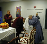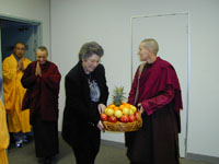 圣 智 及 维 摩 诘 、 我 们 的 阿 达 尔 嘛 佛 师 尊 向 女 尼 Venerable Tenzin Palmo 表 示 了 热 烈 的 欢 迎 , 并 与 女 尼 Venerable Tenzin Palmo 作 了 亲 切 的 叙 谈 。 |