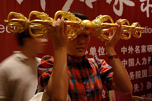 在 2 0 0 8 年 7 月 1 5 日 晚 薄 伽 梵 智 及 维 摩 诘 阿 达 尔 嘛 佛 师 尊 在 中 国 首 都 北 京 《 中 外 名 家 系 列 讲 座 》 对 各 界 听 众 作 《 和 谐 与 宗 教 精 神 》 的 演 讲 。 ( 全 文 另 发 )