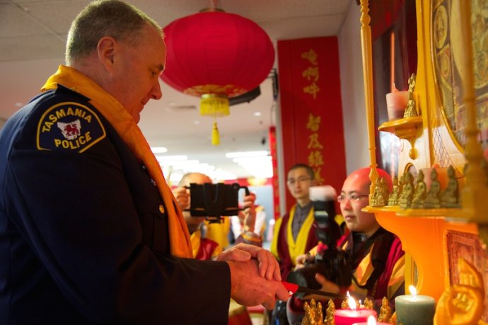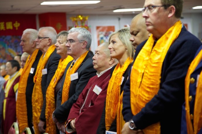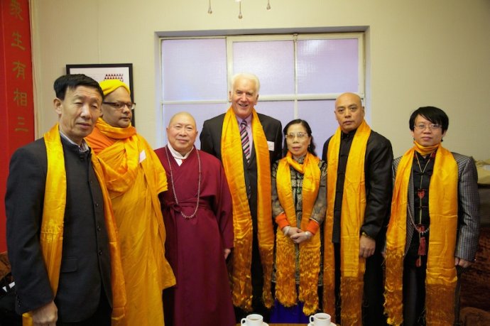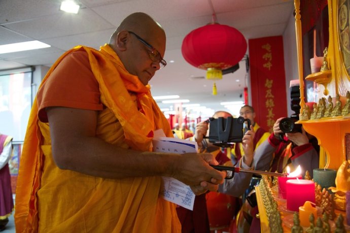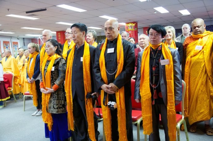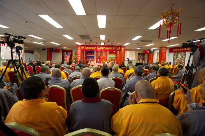法 器 净 明 若 莲 池 映 霞 , 梵 呗 绕 梁 虚 空 圣 海 会 , 佛 音 浩 荡 毫 光 照 十 方 " ; 早 上 十 时 , 阿 丝 律 耶 宫 内 高 朋 满 座 , 本 地 政 治 领 袖 、 社 会 贤 达 、 宗 教 代 表 、 各 界 好 友 , 包 括 从 中 国 、 美 国 、 加 拿 大 、 英 国 、 纽 西 兰 、 日 本 、 印 尼 、 马 来 西 亚 、 越 南 、 香 港 、 韩 国 、 泰 国 等 全 世 界 各 地 专 程 到 来 朝 圣 赴 会 的 圣 密 信 众 、 圣 密 行 者 、 圣 密 上 师 、 圣 密 长 老 济 济 一 堂 , 出 席 中 国 汉 传 密 学 研 究 院 第 六 届 学 术 研 讨 会 开 幕 式 。 |