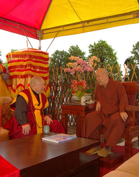 2007 年 12 月 9 日 , 薄 伽 梵 大 聖 智 及 維 摩 詰 阿 達 爾 嘛 佛 師 尊 率 領 中 國 漢 傳 密 宗 ── 聖 密 宗 金 剛 禪 佛 教 世 界 總 部 朝 聖 代 表 團 抵 達 高 雄 , 千 佛 山 正 在 舉 辦 一 年 一 度 的 嘉 年 華 會 。 薄 伽 梵 大 聖 金 剛 無 上 阿 闍 黎 上 白 下 雲 老 禪 師 正 在 嘉 年 華 會 的 中 央 地 帶 , 設 立 中 央 行 軍 古 梵 密 帳 , 莊 嚴 地 端 座 中 央 。 薄 伽 梵 大 聖 智 及 維 摩 詰 阿 達 爾 嘛 佛 師 尊 帶 領 十 八 位 分 別 來 自 中 國 漢 傳 密 宗 ── 聖 密 宗 金 剛 禪 佛 教 世 界 總 部 , 以 及 加 拿 大 、 香 港 中 國 漢 傳 密 宗 ── 聖 密 宗 金 剛 禪 佛 教 分 會 的 聖 密 長 老 、 聖 密 上 師 組 成 的 代 表 團 , 朝 聖 薄 伽 梵 大 聖 金 剛 無 上 阿 闍 黎 上 白 下 雲 老 禪 師 。