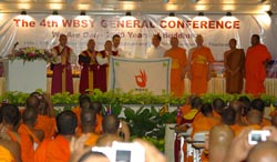 世 界 佛 教 青 年 僧 伽 會 第 一 屆 第 五 次 代 表 大 會 閉 幕 式 , 在 泰 國 曼 谷 皇 家 寺 院 ── Dhammakaya Temple 神 聖 的 Dhammakaya 會 議 大 廳 舉 行 。